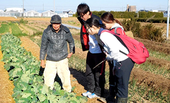 健康プロデュース学部こども健康学科が組織するサークル「学生援農隊」が12月に発足されたのを機に、1月26日(木曜日)に援農隊の3名の学生が、浜松市西区で農業を営む馬淵さんの畑を訪れました。これは、人手不足農家を支援するため、浜松キャンパスで「学生援農隊」が発足されたことを新聞で知った馬淵さんから、お手伝いと学習会を兼ねて来てほしいとの要請を受けたものです。