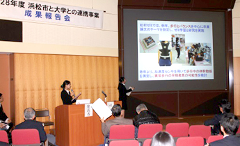 浜松市と大学が連携して市内の協働センター等において、学生が日頃の研究や学びの成果を活用し、自ら講師となって講座を行う「浜松市と大学との連携事業~大学生による講座~」の成果報告会が2月21日(火曜日)、浜松市地域情報センターにて行われました。