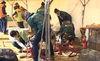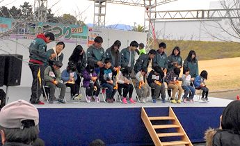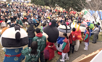 3月5日(日曜日)に開催された「浜松市 北区Deまつり2017」において、経営学部中津川ゼミの学生14名がボランティアスタッフとして当日のイベント運営に携わりました。このイベントは、浜松キャンパスの近くに位置する都田総合公園を会場に、浜松市北区の魅力を発信する地域の一大交流イベントです。会場には地元特産品を販売する屋台が並び、メインステージでは、鼓笛隊演奏、ゆるキャラショー、こどもたちが参加するミカンの皮むき競争などが行われ、多くの入場者を集めました。学生たちは、無料提供のポン菓子作りや甘酒の提供、ステージでのイベント補助などの役割を積極的に担っていました。