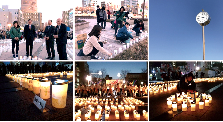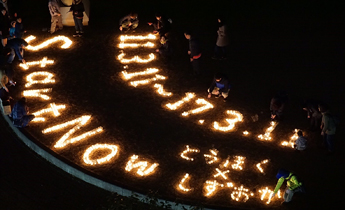 学生は1,000本のキャンドルで「Start Now とうほく×しずおか」の文字を浮かび上がらせ、今こそ伝えたい東北の方々の想いと、静岡にいる私たちの想いをキャンドルの灯にのせて繋ぎました。