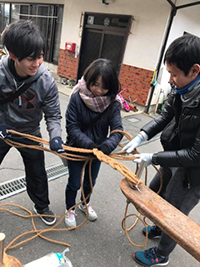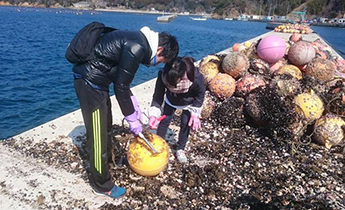 学生は現地に到着後、今回お世話になる漁協組合長のお宅を訪れ当時の震災の様子や、これまでの復興についての話を聞きました。その後、ホヤの養殖用の縄を編む作業や、漁網を浮かせる目的や目印として用いられる浮き玉の清掃などを行いました。お話の中で、震災当時は地震と津波で全てを失い、復興への意欲が薄れていたけれど、ボランティアの方々の一刻も早い復興のために一生懸命働く姿を見て、背中を押されたということを知り、これまでの支援活動にやりがいを感じることができました。