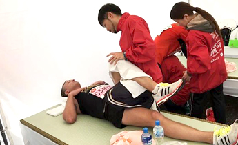 本大会は全国各地より10,000人以上のランナーが出場する国内でも大規模なマラソン大会で、2017年よりコースやサポート体制もリニューアルされました。その中で参加学生は静岡県理学療法士会メディカルサポートの皆さんと共に、ランナーのケアなどの実践補助とその記録を実施しました。