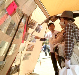 会場には浜松城公園の桜を楽しむ多数の家族連れがイベントに参加し、楽しく遊びながら防災について触れる機会となりました。支援活動の写真を掲示したテントのなかでは、参加者に現地の様子を紹介したり、活動内容について質問を受けたりして災害状況について共有することができました。