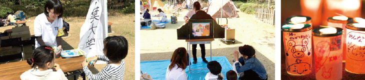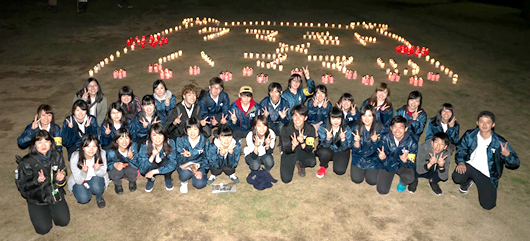 熊本地震を振り返り、追悼し、そこから学ぶイベント「PUBLIC DAY in 浜松城公園」が4月15日(土曜日)、浜松城公園で開催され、浜松キャンパスのボランティアサークルThunder Birdsの学生が運営協力をしました。企画から主催者の方々と関わり、当日は被災地での支援活動を写真で紹介したり、紙食器づくりの体験、どろだんごづくりや防災紙芝居など6つの企画を実施。夜は追悼の想いを込めキャンドルナイトを実施し、さらには被災地、熊本益城町とテレビ通話での中継を企画しました。