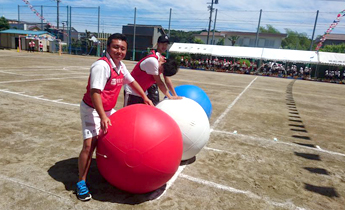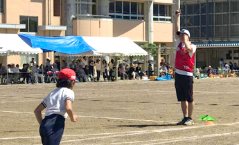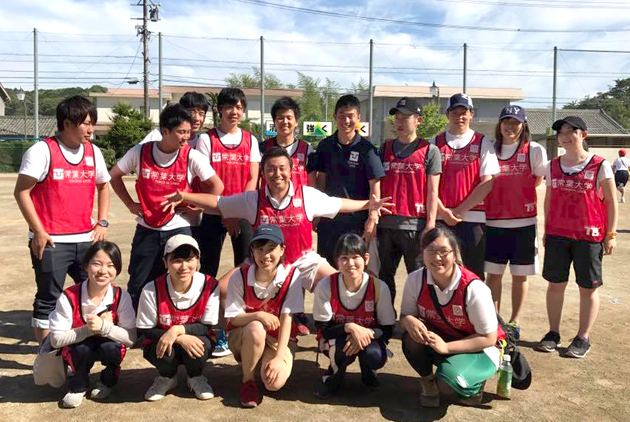 学生たちは前日に会場設営を行い、当日は複数のグループに分かれ、徒競走のスターター、放送補助、記録写真撮影等の運営補助を行いました。教職を志望している清水将司さん(心身マネジメント学科3年)は「組体操が問題になっている中で、小学校で安全に組体操を行っている現場を見られてとても勉強になった。自分たちの子どもの頃とは指導法が大きく変わっていることを実感できた」と感想を述べました。