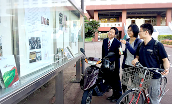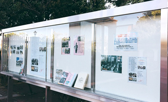 静岡キャンパスでは、6月8日(木曜日)の創立記念日を含む1週間を創立記念週間と位置づけ、学内掲示板に創立からのあゆみを示す写真の展示を行いました。学園創立時の写真や創立者木宮泰彦先生のご業績に関する資料が展示され、通りかかった学生たちが足をとめて眺める姿が見られました。