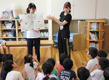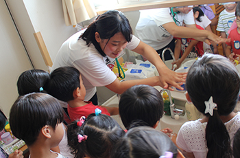 本学健康科学部看護学科2年生で結成する“手洗いチェッカーズ”が7月6日(木曜日)、常葉大学短期大学部附属たちばな幼稚園を訪問しました。