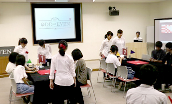 実習の中で考案したプログラム(ODD or EVEN)は、対戦型のカードゲームを基本としますが、ゲームを有利に進めるためには、参加チームは地域のチェックポイントを巡って、得点の高いカードを入手しなければなりません。約20名の参加者は、日曜日の1日、地域密着型の交流イベントを楽しみました。