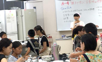 今年度、新たに企画された健康栄養学科の「常備食で簡単調理」では、イラストやクイズを取り入れて災害時の様子や食事について学生が説明した後、パッククッキングという調理法を用い、トマトジュースを使った炊き込みご飯を調理しました。参加者からは「災害時の食事には思えない」など驚きの声を多数いただきました。この講座を担当した杉山陽加さん(健康栄養学科4年)は「参加者同士が食べ比べをしたり、意見交換されている様子がとてもうれしかった。防災に対する意識が高まるとよいと思う」と話しました。