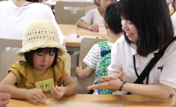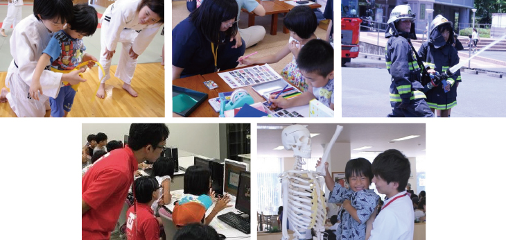 7月15日(土曜日)に学生が講座を企画運営する「キッズオープンキャンパス」が浜松キャンパスで開催され、ことば、スポーツ、からだのしくみ、自然体験など、各学科の学びを活かした21講座が開講されました。当日の参加者はのべ1,329名、訪れた小学生や園児は思い思いの講座に参加し、大学での学びを楽しみました。