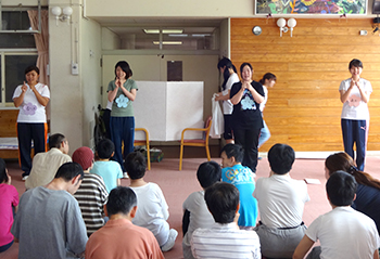 今回の交流会に初めて参加した2年生は「入所施設がどのようなところかも分からず、また、重度の知的障害のある方とのコミュニケーションもイメージがわかずに、はじめは緊張した。でも、自己紹介のあとの手遊び歌で笑顔を見せてくださったり、一緒に体を揺らして楽しんでいる姿を見て、障害の重さに関わらず一緒に楽しめるんだということが分かってからは、緊張もほぐれ、最後まで楽しんで交流会を進めることができた」と感想を述べました。