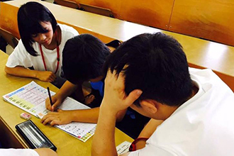 子どもから寄せられた感想からは「みんなでまちがっているところを教え合ったり、話し合ったりしたので、うまく勉強ができた」、「忍者で、手裏剣や吹き矢、爆弾を集めたのが楽しかった」など、充実感がうかがえました。一方、学生は、「子どもが大きな声を出した時に、どうしたらよいのか迷った」、「どのように声を掛けたら課題に取り組む気持ちになってくれるのか、試行錯誤した」、「ゆっくり説明して理解させることで、物事がスムーズに運ぶことが分かった」と述べるなど、子どもとのペア活動を通じてさまざまなことを学んだ貴重な1日となりました。