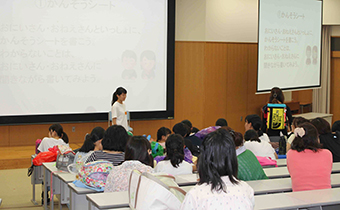 浜松キャンパスでは「静岡県ことばと心を育む会」との共催で行われ、育む会は児童のコミュニケーション能力の発達を期待し、学生は特別支援教育への理解を深めています。