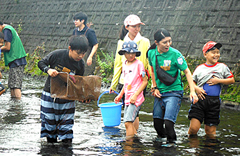 社会環境学部の山田辰美教授と自然体験活動研究会が企画運営をするイベント「水辺探検隊」が8月22日(火曜日)、富士市内で開催されました。このイベントは富士市の河川課と静岡県富士土木事務所が主催する、2003年以来毎年続いている環境教育イベントで、当日は市内の小学生が多数参加し、学生のリードで川を楽しみました。