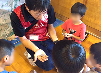 益城町立広安西小学校では、授業の補助や登下校の見守り、放課後児童クラブの時間にどろだんご作りを行いました。活動に参加した中野友梨乃さん(こども健康学科2年)は「いまだにストレスや不安を抱え感情が不安定な子どももいるため、思い切り遊び楽しむことが大切だと感じた」と語りました。