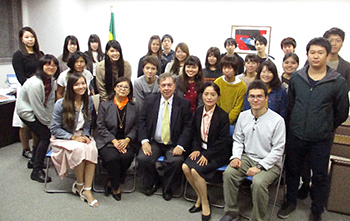在浜松ブラジル総領事ジョゼ・アントニオ・ピラス氏からお招きいただき、外国語学部グローバルコミュニケーション学科で外国語を学び始めた1年生とブラジル・ポルトガル語を学ぶ2~4年生23名が、10月18日(水曜日)に浜松ブラジル総領事館を訪問しました。