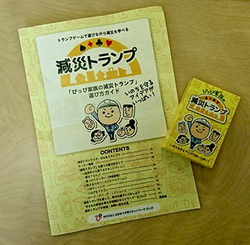 「減災が学べるトランプ」は、災害が起きた時に、子どもが自分で自分の身を守るにはどうしたらよいかを、具体的に考え、遊びながら学ぶことができるトランプです。講座の参加者も実際にトランプを使い、リーダーとして子どもたちにどう伝えるか学んでいきました。