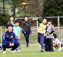 11月5日(日曜日)は陸上競技部が、小学生を対象にした「走る」・「投げる」・「跳ぶ」をテーマに陸上教室を開催。よい姿勢で腕を大きく振って競技をする事が上手くなるコツだと伝え、腕を後ろに組んで走ったり、大きく腕を振ってみたりと、フォームの違いで走るスピードが変わる事を学びました。「投げる」を学ぶ時間では、上手に投げると大きな音が鳴るヴォーテックスという練習アイテムを使用し、自分が投げた音と大学生の投げた音との違いを感じていました。