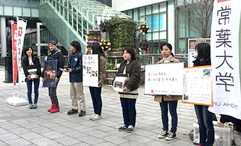 2月24日(土曜日)、25日(日曜日)、3月3日(土曜日)、4日(日曜日)の4日間、浜松駅前において、3.11はままつ 東北復光プロジェクトのメンバー30名が、東日本大震 災復興支援のための募金活動を実施しました。常葉大学浜松キャンパスの学生だけでなく、静岡産業 大学、浜松学院大学、静岡大学の学生も参加しました。