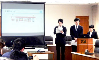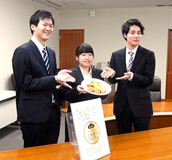 発表した実渕玲奈さん(経営学部4年)は「生産者・加工者・販売者・商工会議所の方々のご意見を伺い、今後も学生の目線からブランド力と認知度の向上に貢献できるよう取り組んでいきます。」と語りました。