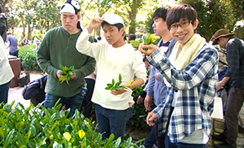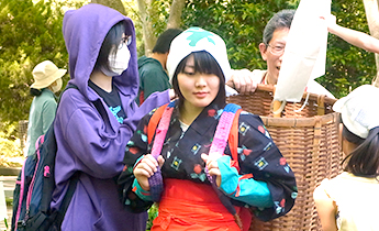 「草薙ツアーグループ」は、県立美術館の敷地にある「杉山彦三郎記念茶畑」の保全、活用を行っています。この茶畑は明治時代に「やぶきた茶」を生み出した試験農園の名残で、歴史的な郷土資産でもあります。学生たちはボランティアさんやお茶農家有志の方たちと交流する中で、ボランティア活動や郷土資産を守ることについて学びました。また摘んだ茶葉の回収や、茶娘の恰好で雰囲気作りをしたり、杉山彦三郎をたたえる相撲甚句の合いの手を務めたりして、お手伝いをしました。6月にはこの茶畑の草取り、肥料やりに協力させていただく予定です。