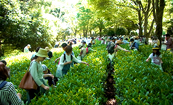 教育学部生涯学習学科と造形学部の博物館実習クラス37名が4月28日(土曜日)、静岡県立美術館ボランティア「草薙ツアーグループ」が主催するお茶摘みイベントに参加しました。