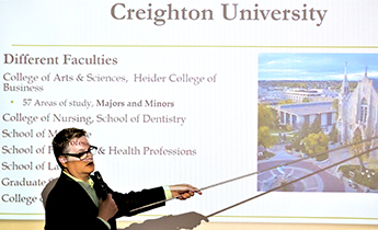 (オマハ市やクレイトン大学について引率のマクラナハン先生と海野先生が講演)