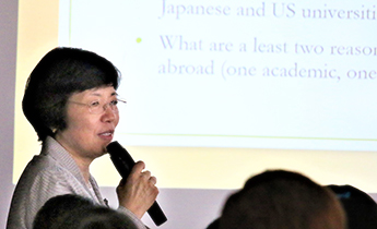 留学の意義や日米の大学生の違いに関して話す海野先生
