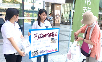 浜松キャンパスのボランティアサークル Thunder Birdsの学生が、8月6日(月曜日)、7日(火曜日)の2日間、西日本を中心に甚大な被害が出た平成30年7月豪雨災害への募金活動を浜松駅前で行いました。学内で行っていた募金活動を含め84,460円が集まり、赤羽共同募金に寄付をしました。