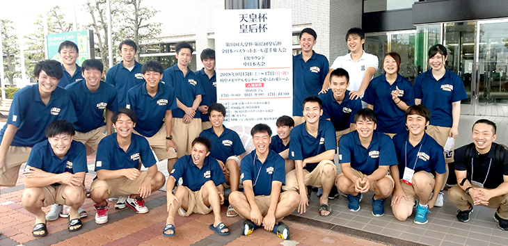 静岡県代表として天皇杯中日本ブロック第1ラウンドに進出した本学男子バスケットボール部は、9月16日(日曜日)岐阜市メモリアルセンターで行われた京都産業大学(京都府代表)との初戦に臨んだものの、相手の留学生にインサイドを制され、76-94で惜敗しました。しかし、苦しいゲーム展開の中での粘り強く食らいつき、最後まであきらめない戦いを見せることができました。この経験を現在開催中の東海学生1部リーグにつなげ、インカレ出場権の獲得に向けて頑張っていきます。