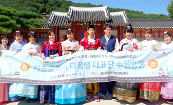 このたび「JENESYS 韓国との間の招へい事業」(水原市国際交流センター・静岡市国際交流協会主催)の「平成30年度静岡市大学生訪韓研修」に、静岡市の大学生10人が参加し、本学外国語学部グローバルコミュニケーション学科から2人の学生(1年の伊川亜祐菜さん、竹下媛香さん)が選抜されました。9月6日(木曜日)から9月13日(木曜日)までの日程の中で、韓国伝統文化体験、京畿大学学生との交流会、青年自立組織団体訪問、ホームステイなど貴重な体験をしました。