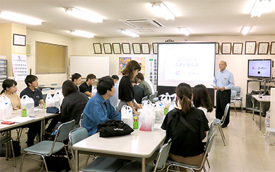 企業概要の説明にはじまり、渡邉直代表取締役社長のご挨拶の後、創業の思いや現在の経営課題、「安定供給」と「高品質」を重視する経営姿勢、そして求められる人材像など、直接ゼミ生がインタビュアーとなって渡邉直代表取締役社長からお話をうかがいました。その後、3つのグループに分かれて、第二工場の生産工程を視察し、工場長、検査担当の方と質疑応答を行いました。