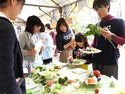 10月14日(日曜日)、浜名湖ガーデンパークにて開催された「第33回労福協まつり」において、本学健康プロデュース学部健康栄養学科の公衆栄養学研究室7名のゼミ生が「野菜の摂取目標量体験コーナー」を開きました。