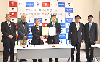本学は、地域の更なる発展と安全・安心な社会づくりに貢献することを目的として相互が包括的に協力、連携をする協定を静岡県警察と締結しました。