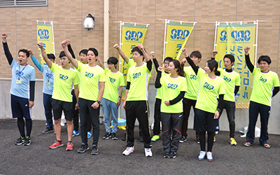 地域見守りのパトロール活動をランニングしながら実施してゆく通称「ランパト」には本学各キャンパスから40名の学生が登録し、この出発式には12名が参加しました。
