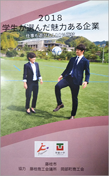 11月20日(火曜日)、藤枝市からの受託事業である「取材型企業情報パンフレット」が完成しました。柴ゼミ生を中心とする法学部の学生約40名が課外活動として、自発的に取り組みました。企業の選定については、藤枝市商業観光課、藤枝商工会議所、岡部町商工会の協力を得ました。4月~7月にかけて、藤枝市「BiViキャン」にて「企業と学生の交流会」を4回開催し、8月~9月にかけては、学生が企業に直接訪問しインタビューを行ない、得られた74社のデータをまとめパンフレットにしました。事業に参加した学生からは、「このプロジェクトに参加して多くの社会人の方とお話することで、今後自分が社会に出て働くにあたり、大変参考になった。この経験から、社会人になるという自覚をしっかりともち、これからの人生をどう生きるかを考えていきたいと思いました。」といった感想が聞かれました。パンフレットは、藤枝市の新成人に、成人式の案内と一緒に郵送される予定です。