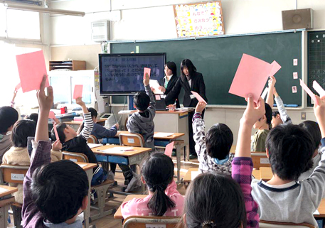 11月22日(木曜日)に健康プロデュース学部心身マネジメント学科木村ゼミの3年生6名は、浜松市立萩丘小学校にて3年生を対象に「楽しく学ぼうスマホ、ネットの使い方」の授業を行いました。