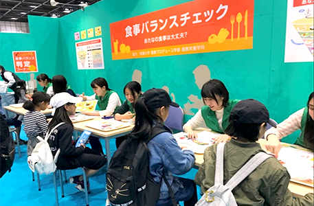 健康プロデュース学部健康栄養学科の学生27名は、浜松市内で11月23日(金曜日)、24日(土曜日)に行われた「メディメッセージ2018 医療の学校」にて、「食事バランスチェック」を行う体験コーナーに協力しました。