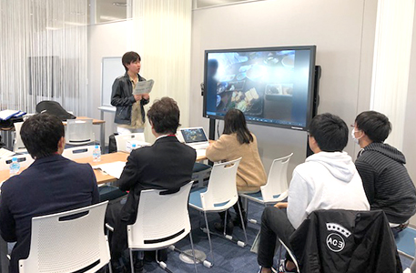 当日は、音声ガイドを制作する(株)Otonoよりプロジェクト全体の説明、静岡市観光交流文化局観光・国際交流課からDAMONDE5の制作経緯や活用方法等の説明をいただいた後、学生メンバーが5つのグループごとに、現地取材を元に、写真を紹介しながら観光ルート(案)のプレゼンテーションを実施しました。その後、DAMONDE5の活用方法、観光ルートの確認やこれからの観光スポットの展開などについて意見交換会を行いました。