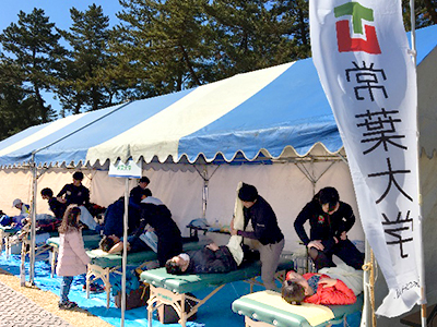 今年は、例年よりもマラソンを走る前に利用する方、初めて利用するという方が多く、小山和泰さん(心身マネジメント学科3年)は「ストレッチングを行い交流する中でたくさんの笑顔や感謝のお言葉をいただき、また、初めて利用していただく方も増え、これまでの活動が地域に浸透してきた証だと嬉しく思います。」と語りました。