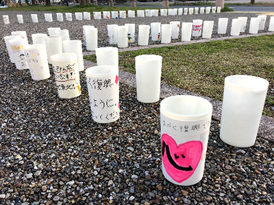 当日は風が強く、安全のため8,600灯となってしまいましたが、実行委員長の田島耀平さん(経営学科3年)は、「災害を忘れず、被災地の方に寄り添い支援し、浜松でできることをすることで、浜松でも災害に対する備えの大切さを伝えたい」と語ってくれました。また、鈴木康友浜松市長は、「キャンドルナイトを契機として、いつか来る大きな自然災害に備えていかなくてはならない。」と話されました。