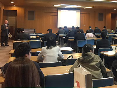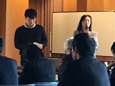 また、「多文化共生社会における地域での取り組み」事業では、焼津市における外国人生活者の増加を見越し、現状のヒアリングと先進地域への視察、そこから導いた具体的な提案までを増井教授と外国語学部グローバルコミュニケーション学科3年の仲宗根エイミさん、亀井李佳さん、同2年の井芹タイナさんが発表しました。学生の実践的な学びの場となったと同時に、地域で活躍できる人材育成につながる取り組みとして紹介されました。