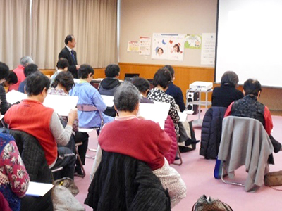 この研修会は、浜松市北区(引佐、細江、三方原)を中心に活動されている食育ボランティアの方々を対象とするもので、参加者は「健康づくりの普及啓発」を活動目的とされており、その意識涵養と健康づくりやその知識を担当地域の多くの方々に広めていただくことを念頭に実践活動を行いました。