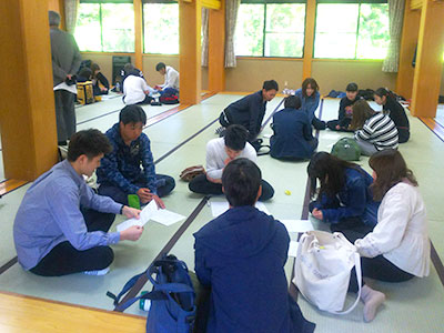 また、本年度は地域貢献サークルCocoaと現代社会研究会に所属する経営学部の2年生3年生の11名も一緒に参加をしました。グループワークを行い、新入生は上級生との交流も図ることができました。1日だけのセミナーでしたが、学科内の学生達の距離が縮まり、帰りのバスでも皆で会話が盛りあがるほど楽しい研修となりました。