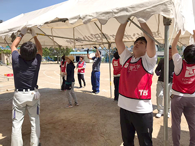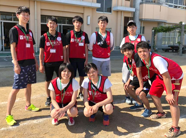 5月25日(土曜日)に浜松市立都田小学校運動会が開催され、ボランティアサークルThunderBirdsのメンバーと健康プロデュース学部心身マネジメント学科木村ゼミの学生がボランティア活動を行いました。運動会前日にはThunderBirdsのメンバーたちが、PTAと協力して運動場でテントの設営を行いました。翌日の運動会では、出発合図、放送補助、児童観察、記念写真撮影、用具準備、ライン引き、召集補助など、運動会運営に学生たちが参加し、地域小学校の運動会を盛り上げました。