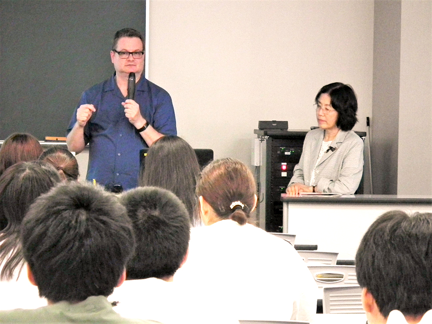 昨年に引き続き2年目となるこの訪問は、7月14日(日曜日)までの4週間行われる「語学・文化研修プログラム」で、午前中はクレイトン大学教員による日本語授業、午後は本学有志学生よる「Study Buddies(学習補助学生)」の交流や、外国語学部のクラスを訪れ交流授業を行う予定です。
