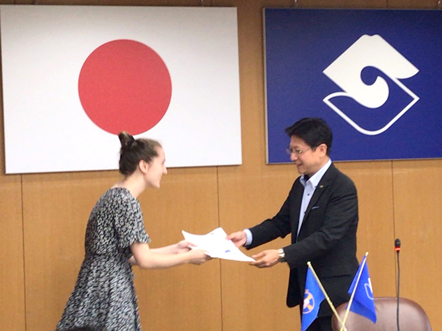 7月1日(月曜日)には静岡市の田辺信宏市長を表敬訪問しました。市長は「国籍や性別、年齢に関わらず多くの人と出会うことが人を成長させる。ぜひまた来てほしい。」と激励の言葉を贈られました。また、市議会議場を見学するなど、静岡市職員の協力により日本の自治体の様子を感じることができました。