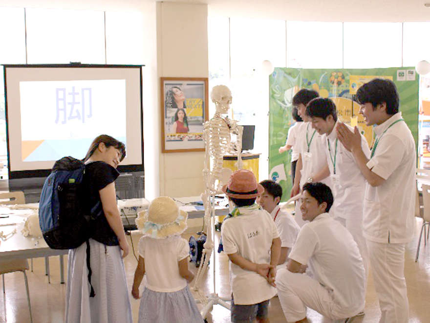 3号館学生ホールでは「光るどろだんごつくり」や「プラバンキーホルダーつくり」、人体模型とパソコンを使って、人体について学ぶ「クイズからだゼミナール」等が、各教室では「プログラミング」「カラフルパンケーキつくり」、胃の中の消化の様子を試験管で実験する「食べたらどうなるの?消化の実験」等、日頃の学びを活かした楽しい企画が盛りだくさん実施されました。