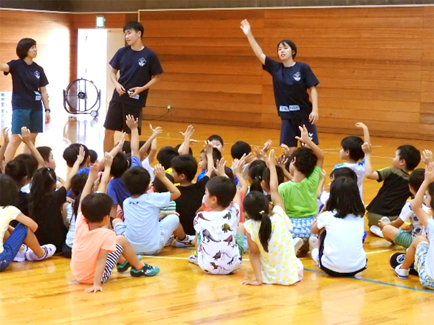 指導した心身マネジメント学科2年の松井秀太さんは「子どもたちにわかるように説明をすることがとても難しかった。自分が思っていた以上に子どもたちを動かすことは大変だった」と振り返っていました。