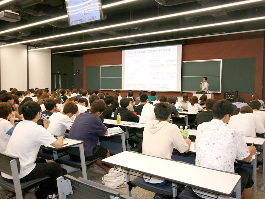 3本の講演、東海大学・園田由紀子先生による「コミュニケーションとは?-聴く・話す-」、鈴与カーゴネット(株)総務人事課長・幸田隼人氏による「社会で求められる人物像」、経営学部山本隆三先生による「キャリア・デザイン」を通して、大学生・社会人として身につけるべき素養や心構えを学びました。